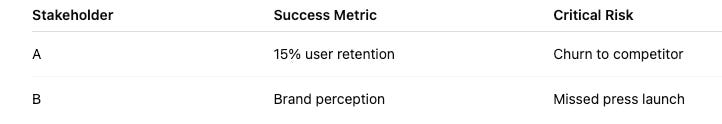Both stakeholders felt included. One even volunteered to help with customer feedback for Feature Y’s rollout plan.