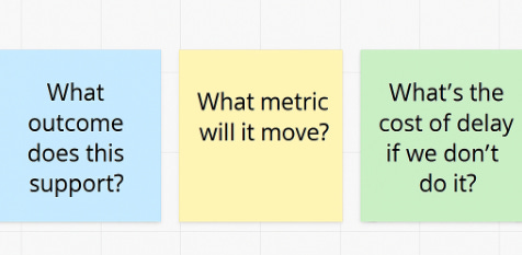 Tip: Stakeholders may say, “Everything connects to the vision somehow”, ask back - “Show me the metric this item impacts directly.” That will filter wish-list items fast.