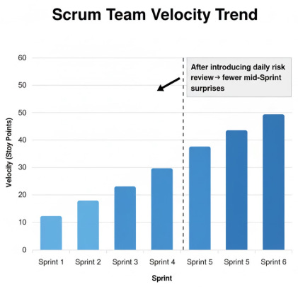 In the Sprint Review, say:“Here’s what changed after we introduced Work-In-Progress limits — notice how blockers dropped by half.”