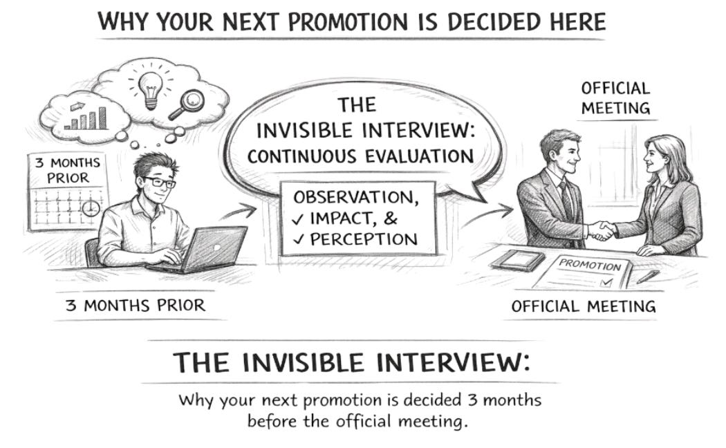 You are actually going through an “Invisible Interview” every single day, months before your official appraisal.